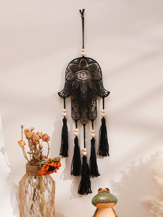 Wall Decor Large Boho Macrame Handmade Yarn Woven Wall Art Leaf Tapestry Wall Hanging With Faux Feathers For Home Decor